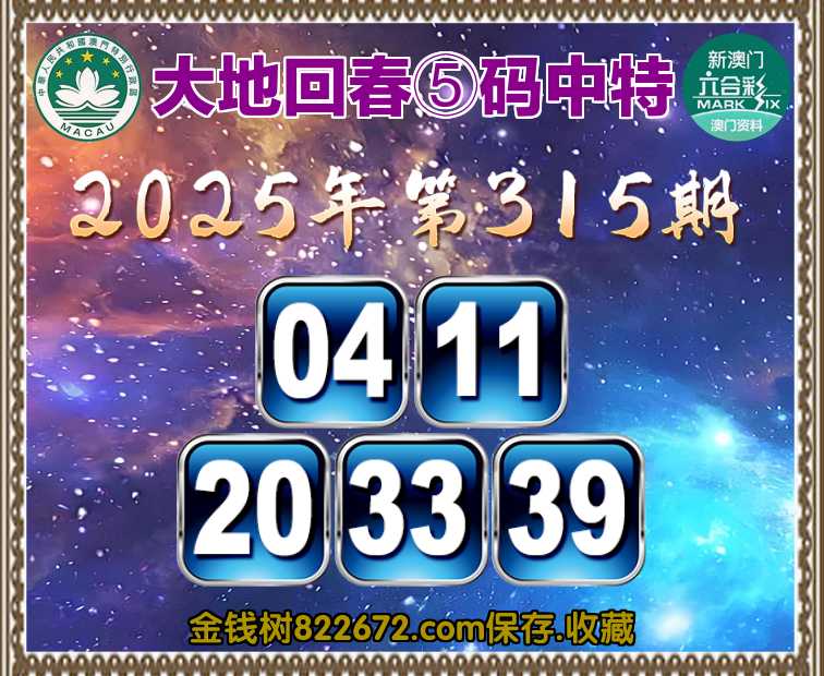 315期:《大地回春》 🥽⑤码中特🥽【04.11.20.33.39】开:04准上榜高手