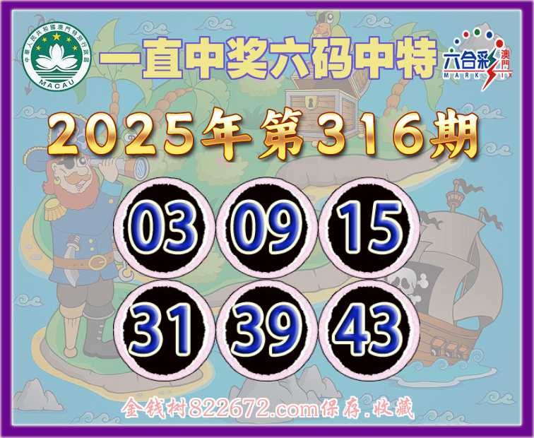 316期:【一直中奖】 ✂️六码中特✂️【03.09.15.31.39.43】开:24