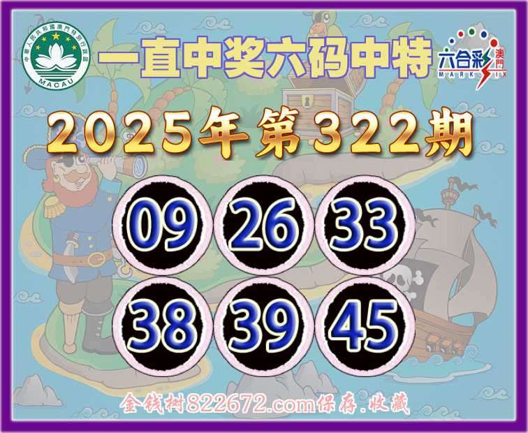 322期:【一直中奖】 ✂️六码中特✂️【09.26.33.38.39.45】开:47